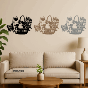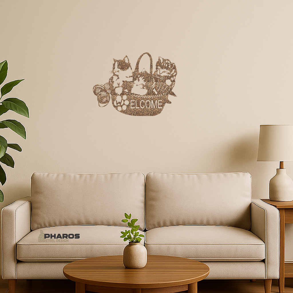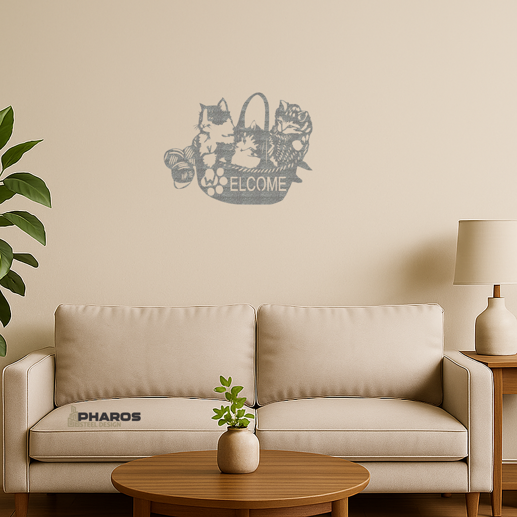 Purrr-fectly playful—Welcome Cats Metal Wall Art.
