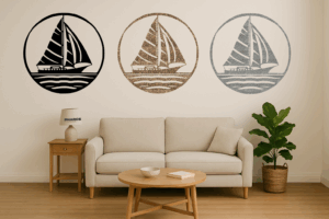 Drift into serenity with our Sail Boat Round Frame Metal Wall Art.