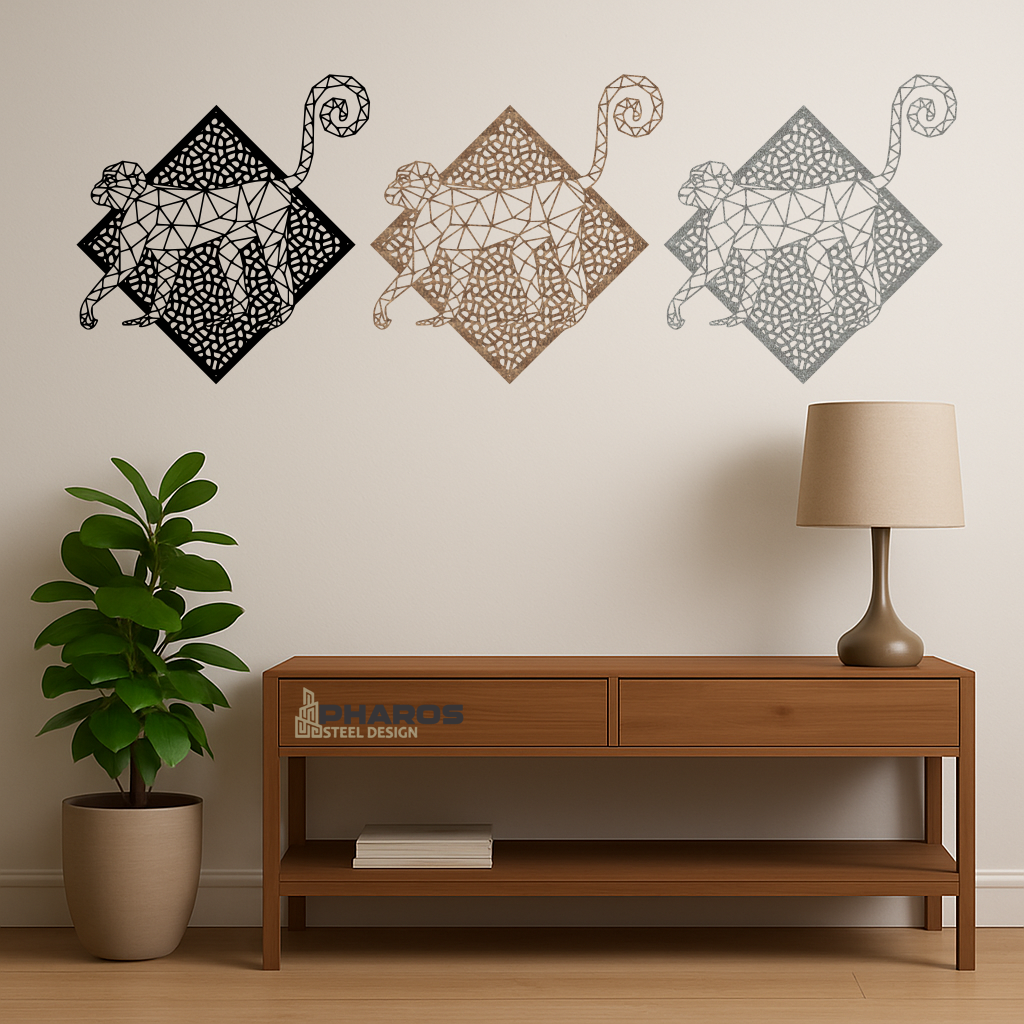 Lively and expressive, this Geometric Monkey metal wall art captures the intelligence and playful spirit of one of nature’s most curious creatures.